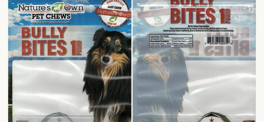 The recalled products include Nature’s Own Pet Chews Bully Bites: